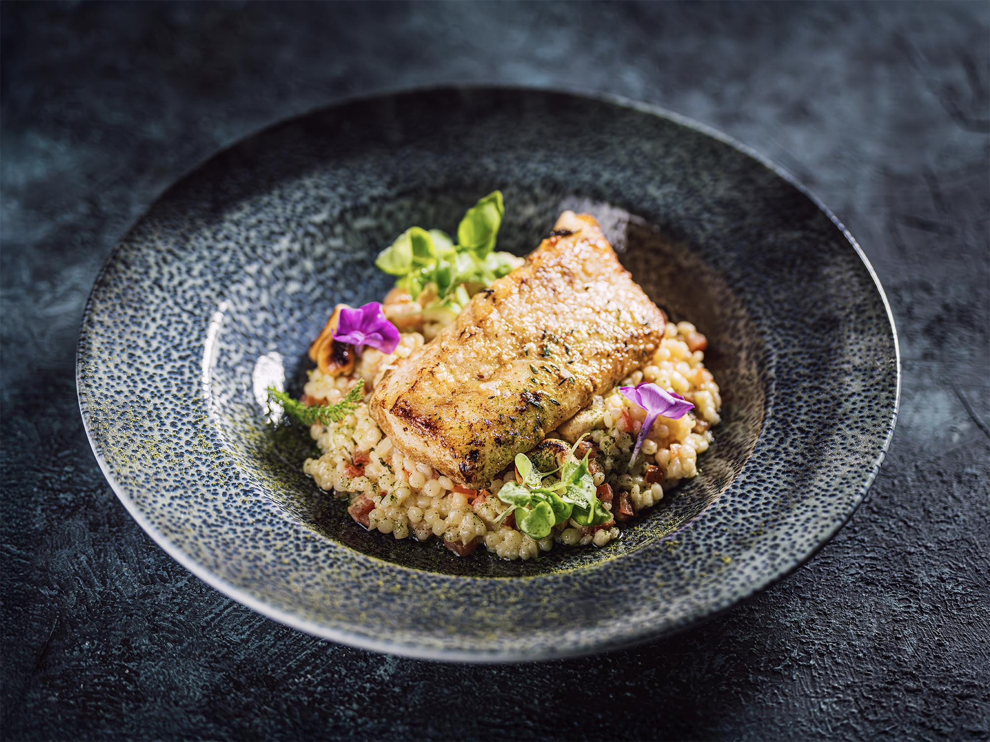 Jemná chuť divoké tresky z Aljašky se krásně snoubí s krémovou tarhoňou připravenou na způsob rizota. Sladká rajčata, čerstvá máta a limetková svěžest dodají pokrmu lehkost a originalitu, díky níž se hodí pro všední i slavnostní příležitosti.